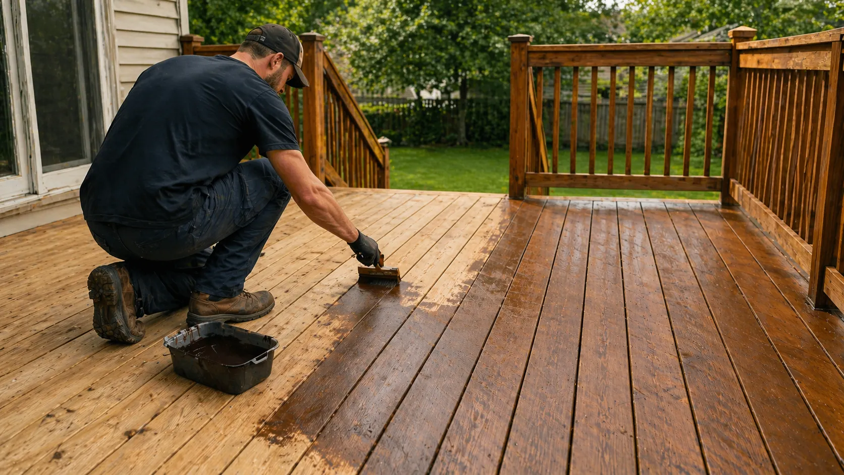 Wood decks change fast when they are exposed to sun, rain, foot traffic, and trapped debris. What starts as mild discoloration can turn into gray weathering, dark organic buildup, and a finish that looks uneven or worn down.