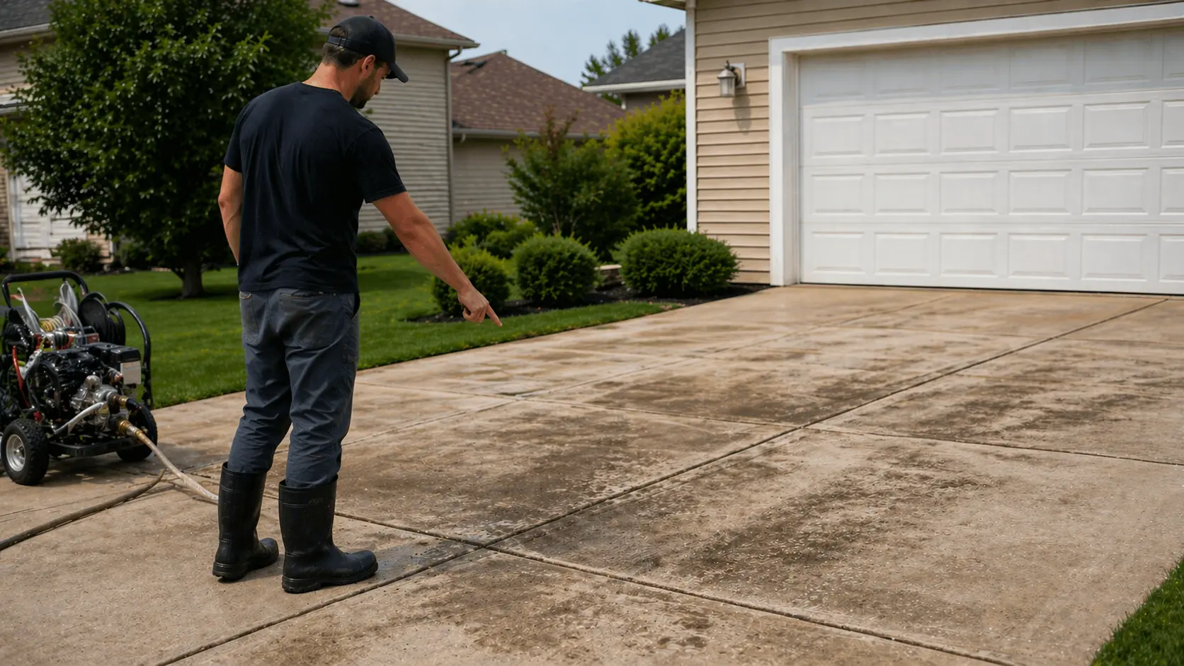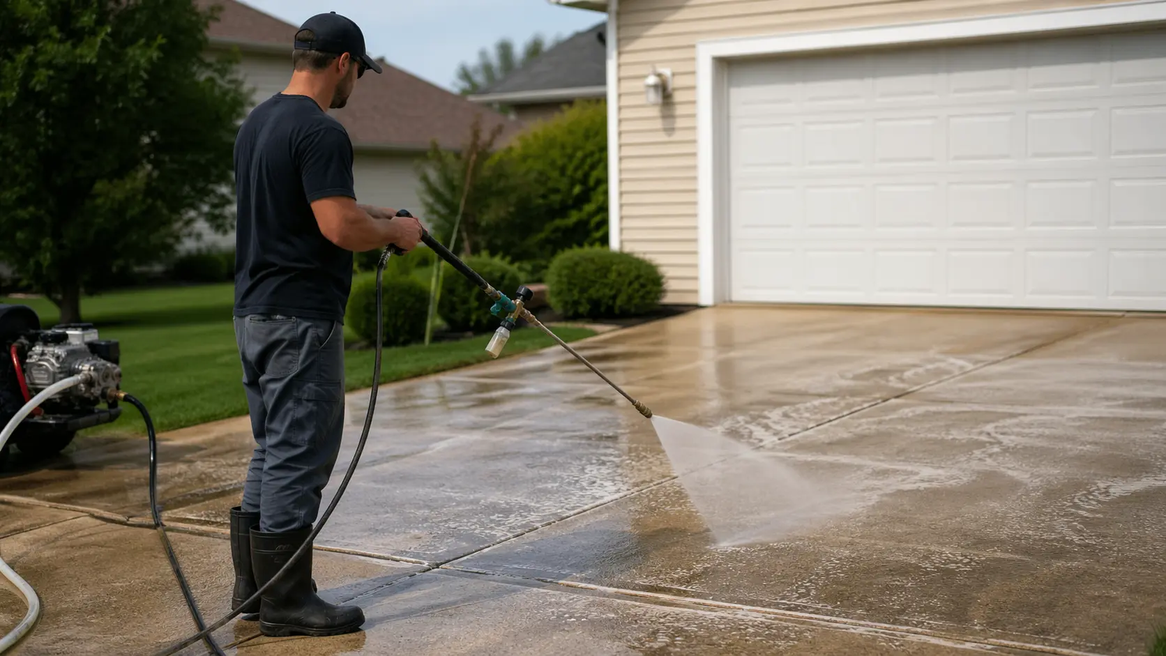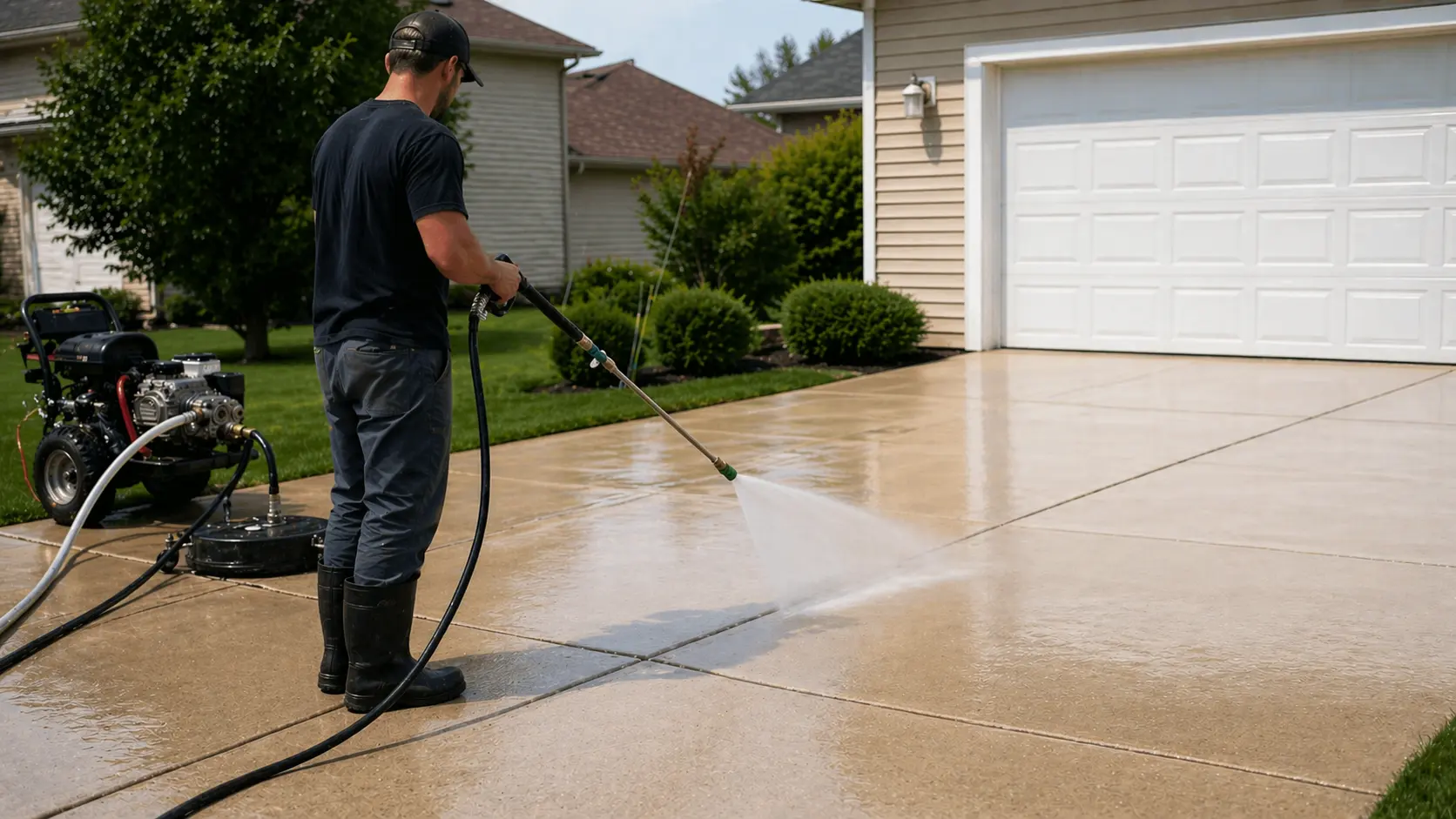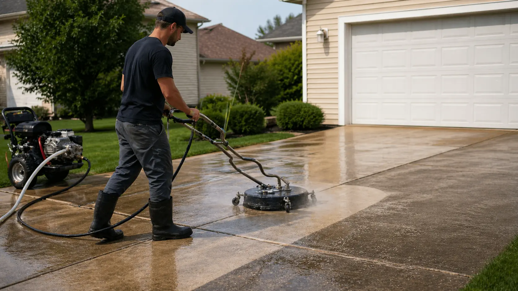 Our driveway cleaning service is built to restore a more even appearance across the slab. We use equipment designed for flat concrete so large sections can be cleaned consistently instead of leaving behind visible wash lines.